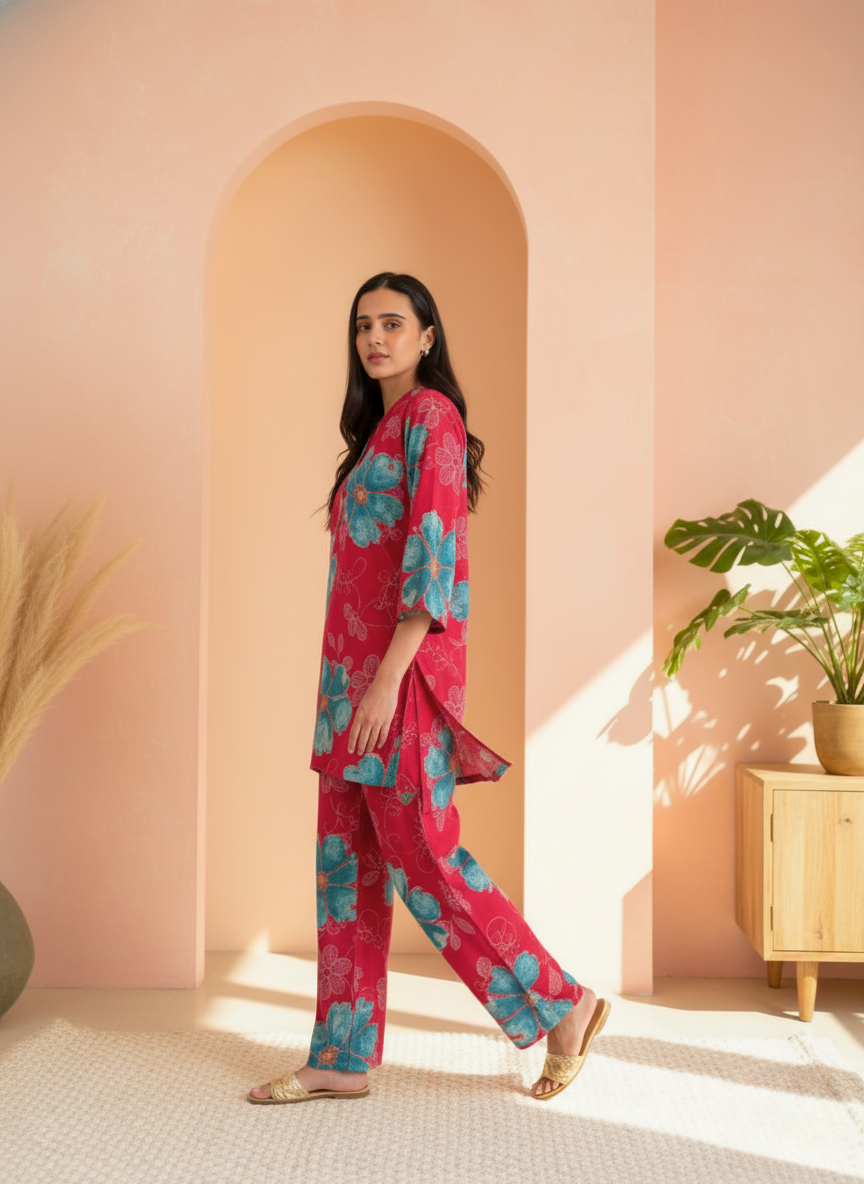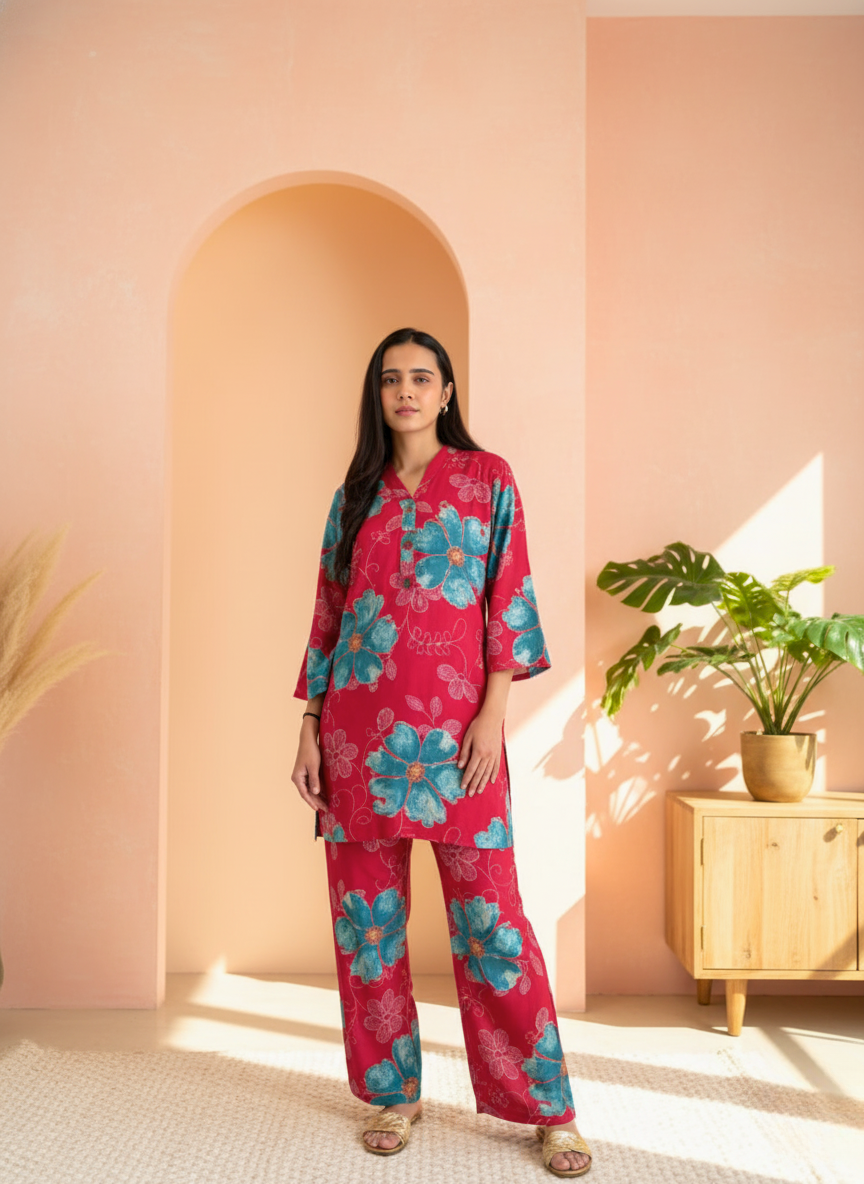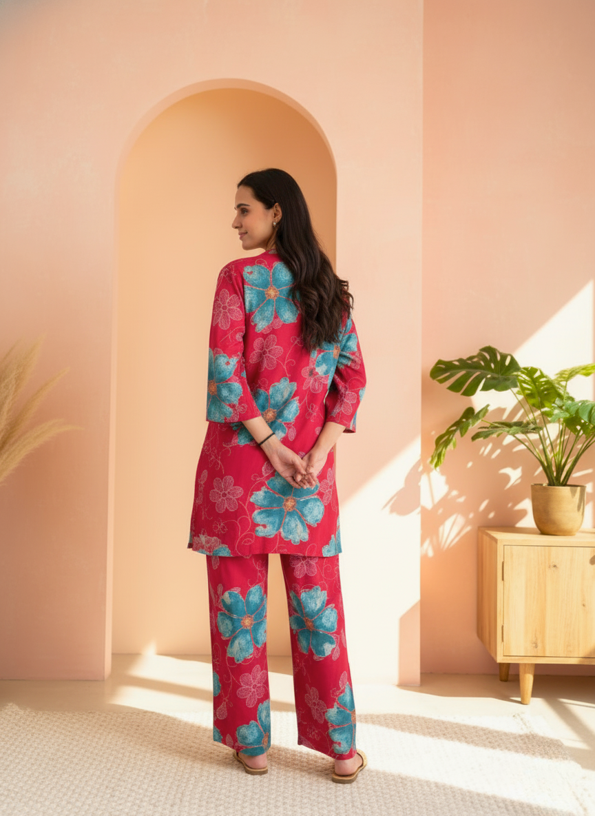 | Product Name | Scarlet Teal Floral Co-ord Set (Tunic & Trousers) |