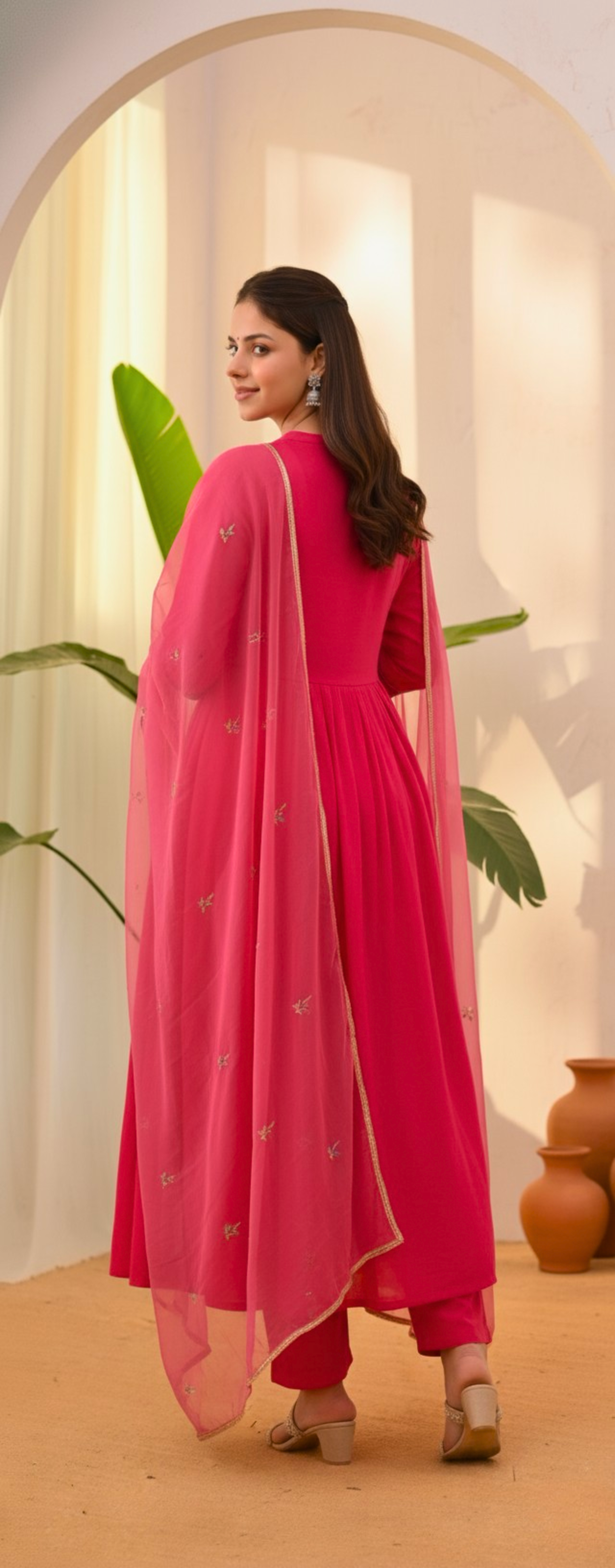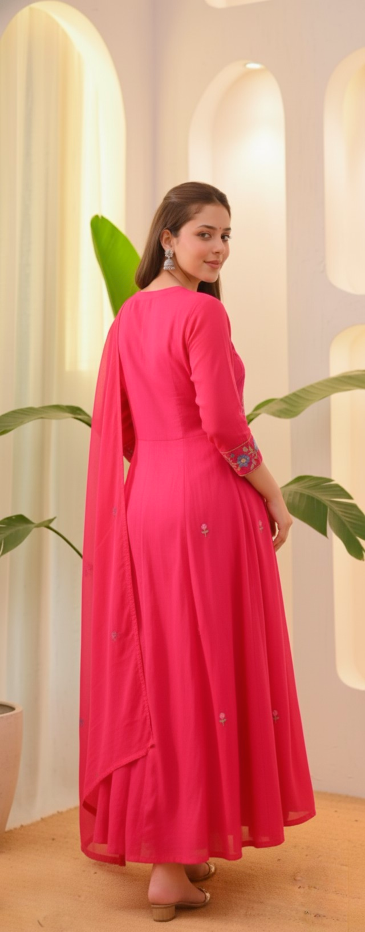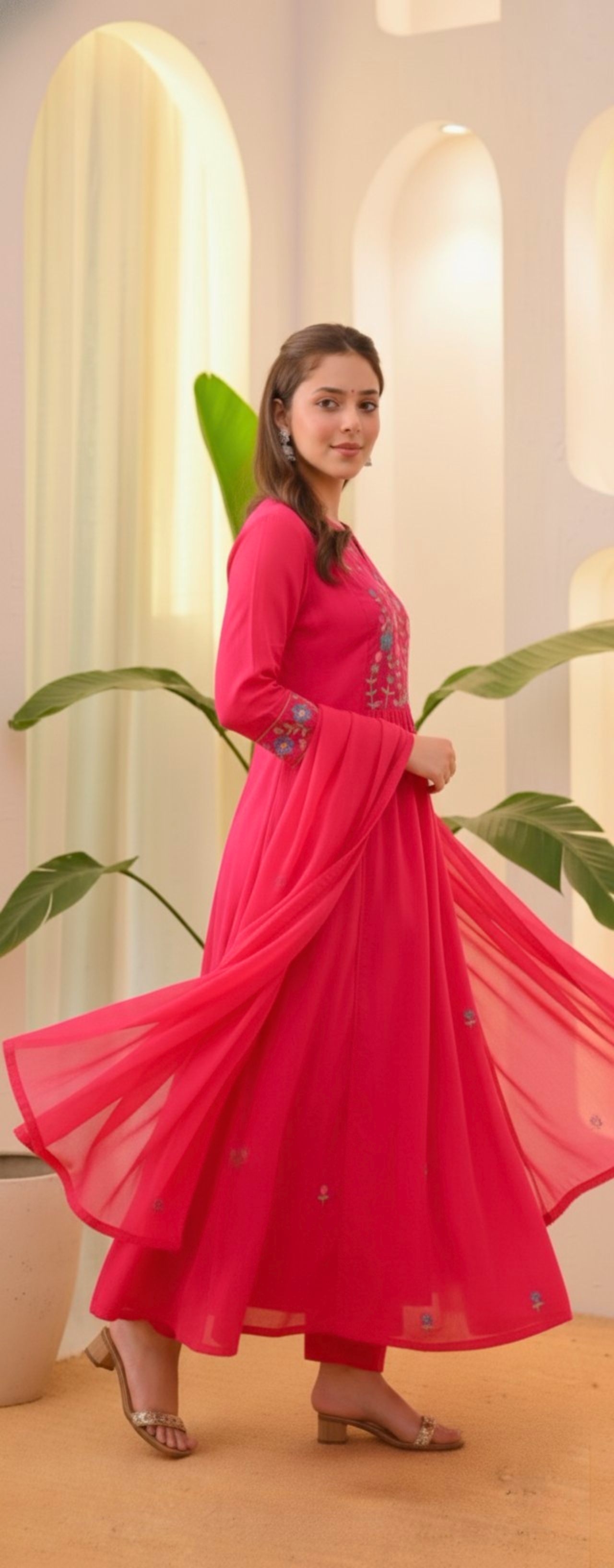 | Product Name | Fuchsia Garden Embroidered Anarkali Set (3-Piece) |