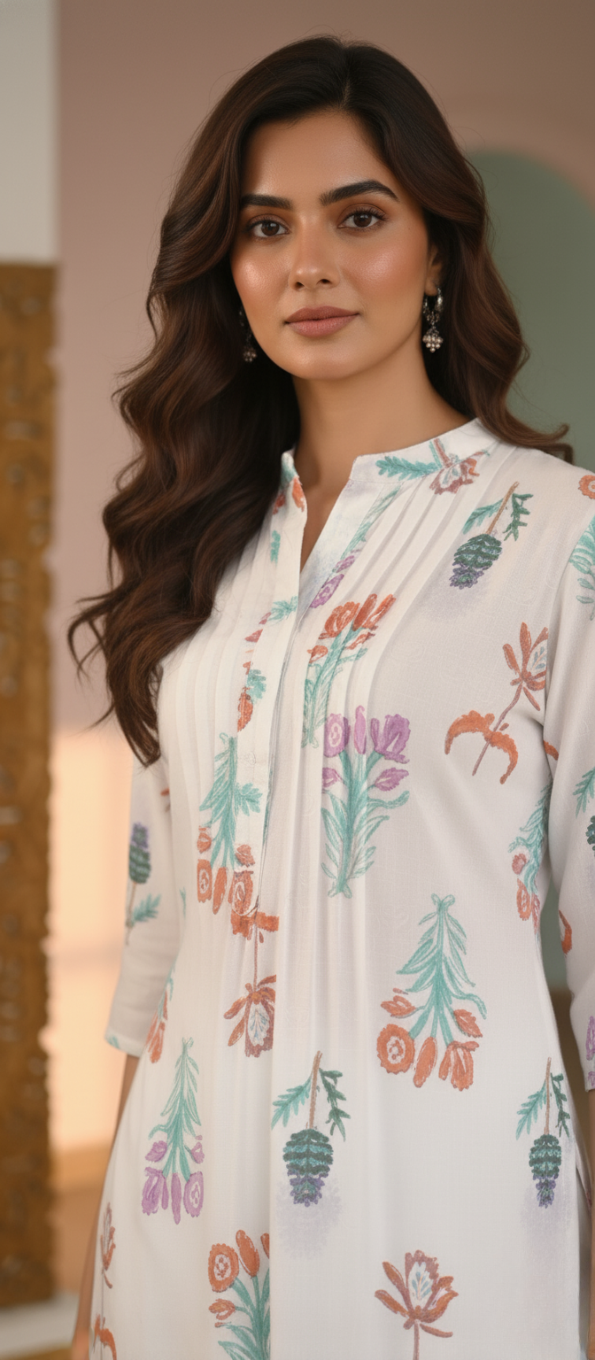 | Style & Fit | **A-Line Silhouette** with flattering vertical pleats at the yoke. |