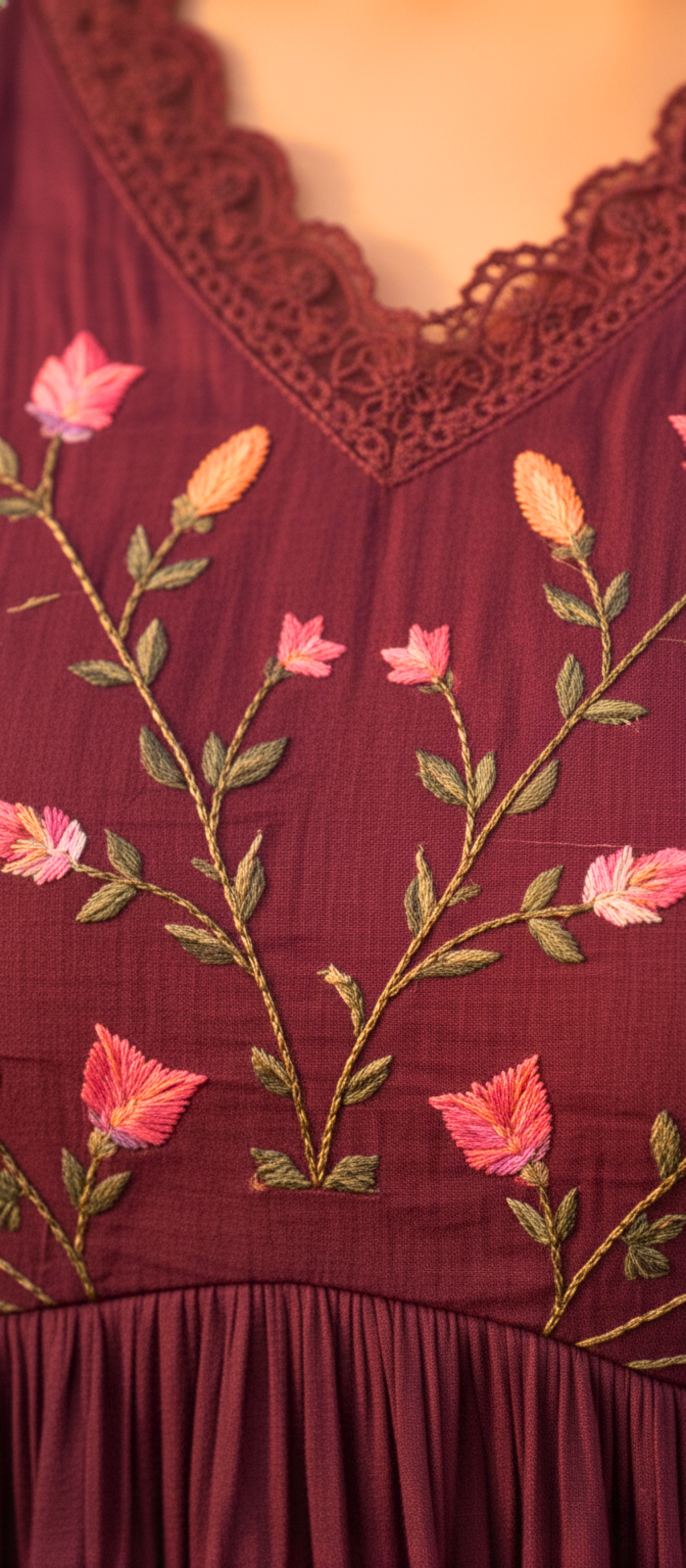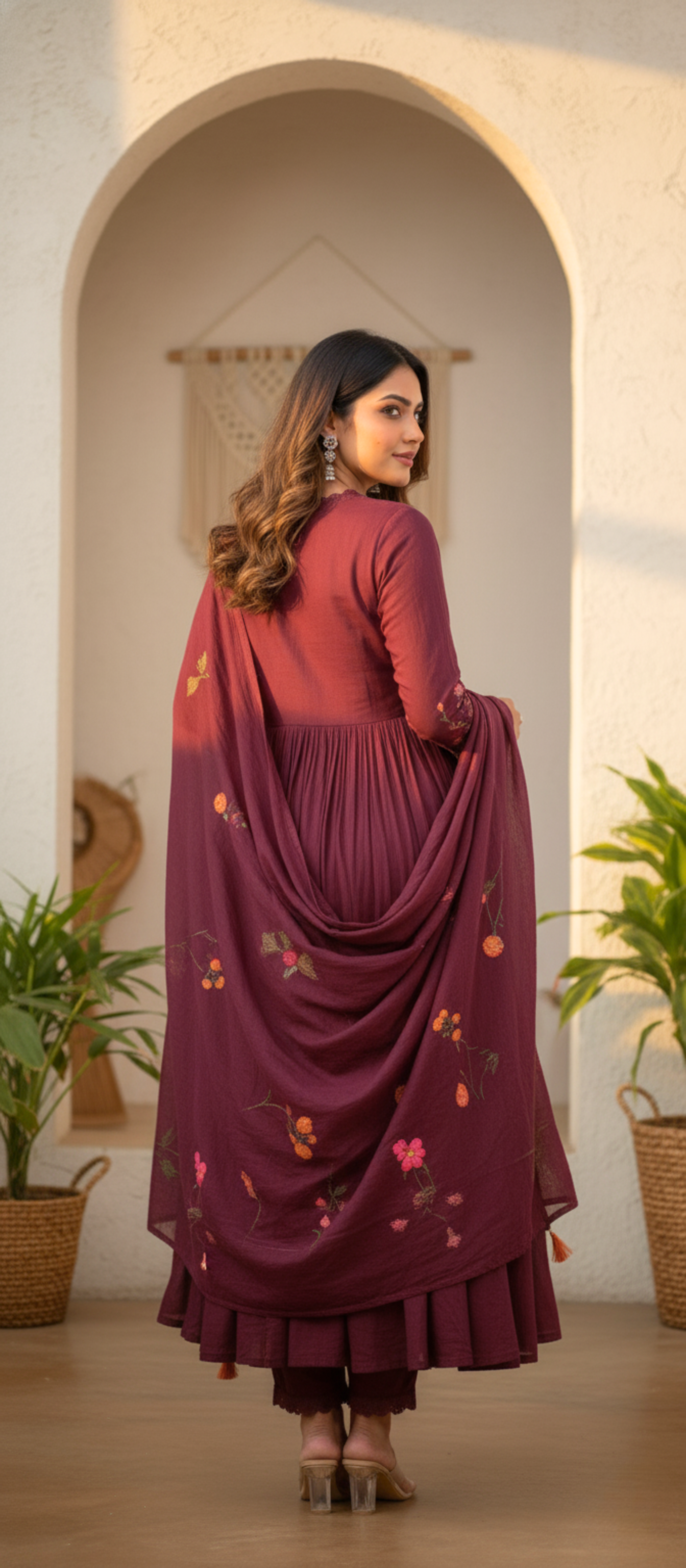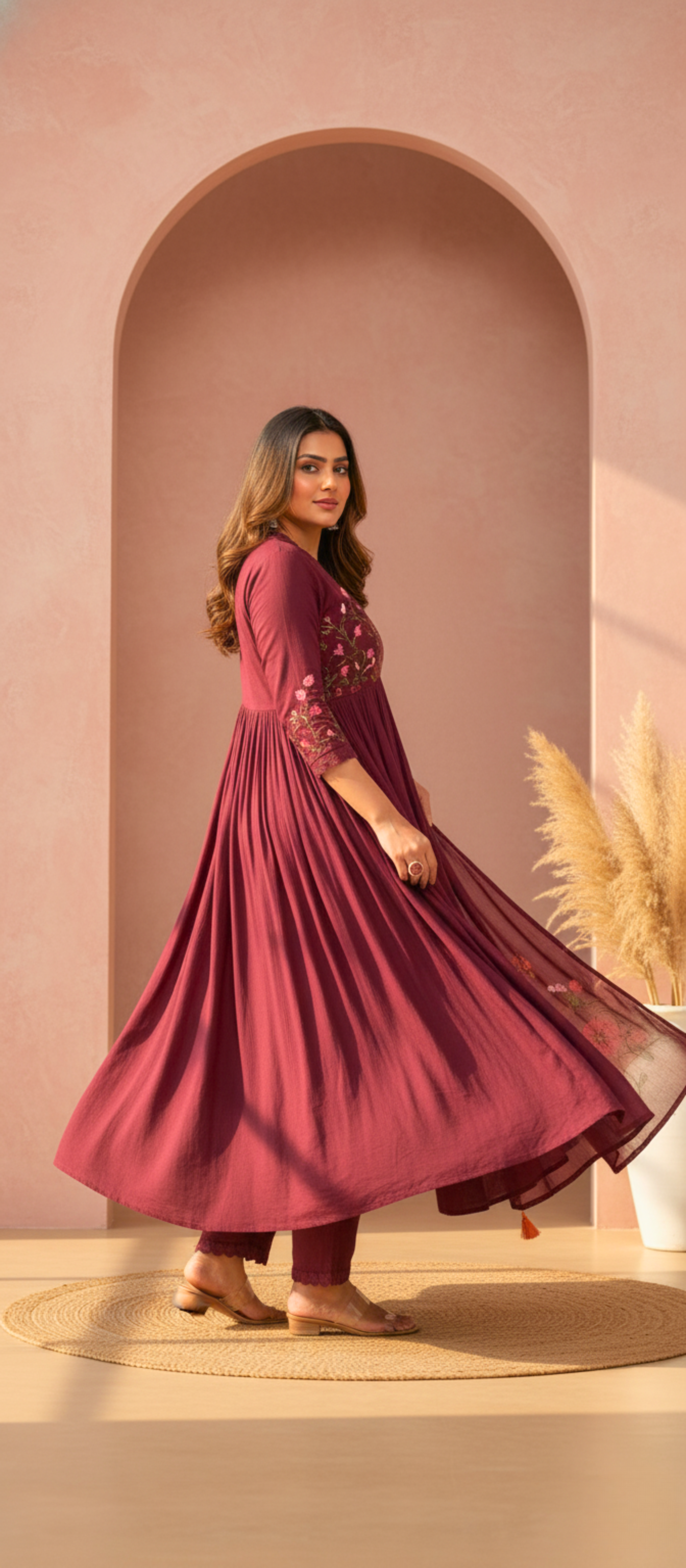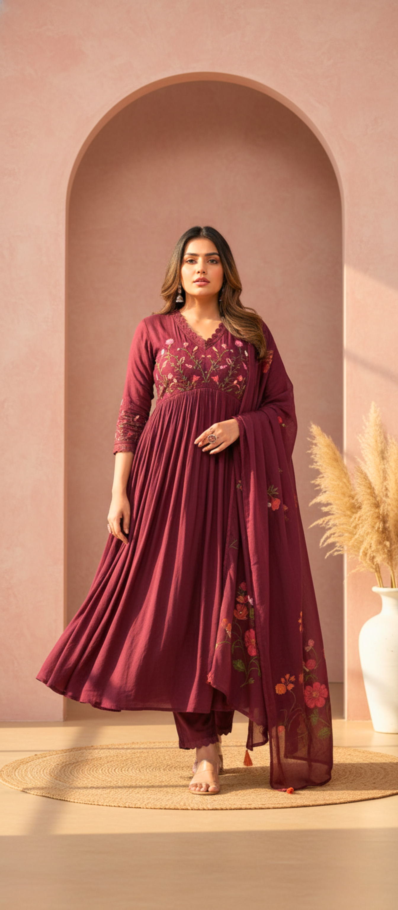 | Product Name | Wine Bloom Embroidered Anarkali Set (3-Piece) |